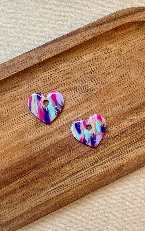 Chaque pièce est une ode à la joie et à l'amour, réalisée en résine et pâte polymère, baignées de nuances de couleurs et d'étincelles.